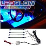 LEDGLOWs Blue Interior Kit is jam-packed with an assortment of features and four super bright LED tubes to illuminate your car's interior. Each kit includes a total of four 9inch tubes with 18 ultra bright LEDs per tube giving you a total of 72 wide angle LEDs and you can mount it to your foot well, under your seats, or even your dash. Each tube also includes 4 ft 8 inches of wire allowing maximum mounting capabilities. The included control box features many different patterns such as strobe, fading, and chase effects. New to this kit is a sound activation feature with a sensitivity controller giving you even further customization options. LEDGLOW stands by every kit with a one-year limited warranty and free technical support.